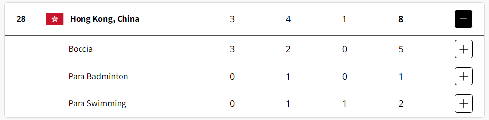 巴黎殘奧會獎牌榜截圖巴黎殘奧會官網