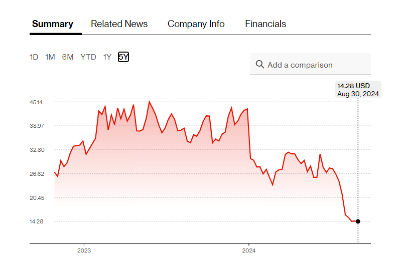 今年8月,Mobileye公司大幅下調了收入預期,並將調整後營業利潤預期下調至遠低於分析師預期的水平。近日股價連續下跌,已至其上市以來的最低水平。