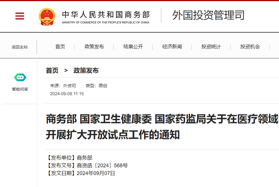 為貫徹落實黨的二十屆三中全會關於擴大自主開放的決策部署,引進外資促進我國醫療相關領域高質量發展,更好滿足人民羣眾醫療健康需求,擬在醫療領域開展擴大開放試點工作。現就有關事項通知如下: