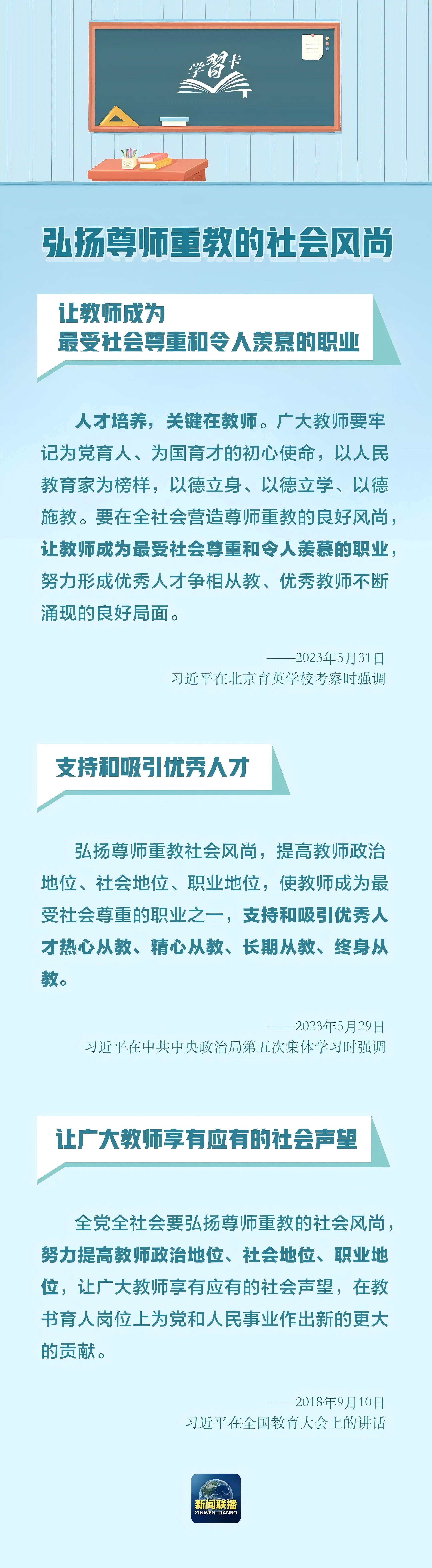 學習卡丨教師要成為大先生 guancha 2024-09-09 百年大計,教育為本。教育大計,教師為本。 黨的十八大以來,以習近平同志為核心的黨中央高度重視教師隊伍建設問題,在不同場合多次強調教師工作的重要意義。 在我國第四十個教師節到來之際,讓我們重温總書記的話語,一起學習↓↓↓