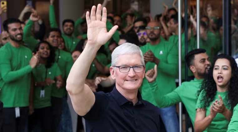 2023年4月,美國蘋果公司首席執行官蒂姆·庫克為印度首家蘋果官方專賣店揭幕。 路透社