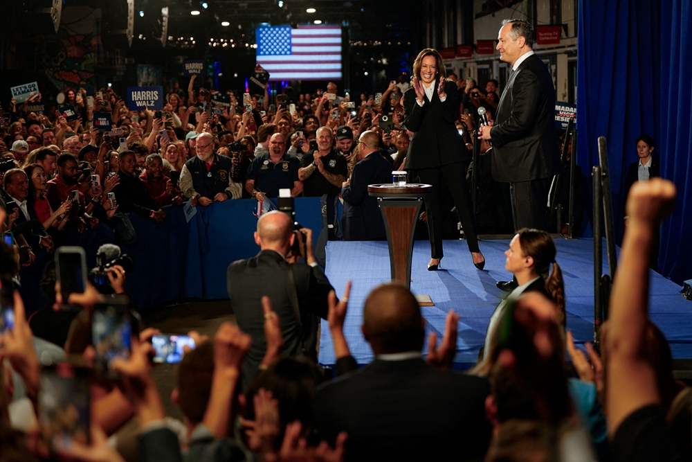 與特朗普的首場辯論結束後,哈里斯面對支持者發表講話IC Photo