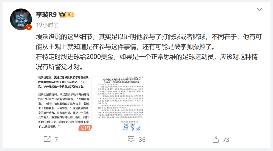 此外,據國內足球媒體的報道,原黑龍江冰城隊球員埃沃洛也在禁足名單公開後,回應稱自己是“清白的”。