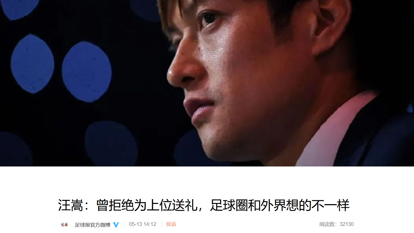 汪嵩出現在禁足名單中,令不少球迷大呼意外。就在今年早些時候,汪嵩曾對《足球之夜》欄目表示,最大遺憾是代表國家隊出場的時間太少,國內選手競爭激烈,而他“接受不了”為了上位送禮。更早前,汪嵩還説過,自己拒絕過“幾十萬元讓他踢場假球”的邀請。