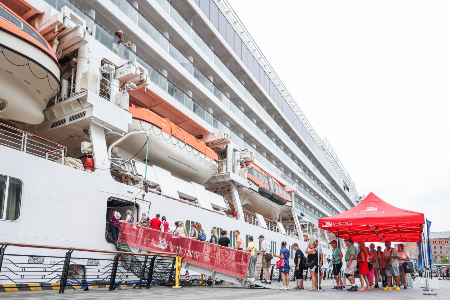 “中國探索之旅” 遊客結束首日行程返回船上。 維京遊輪