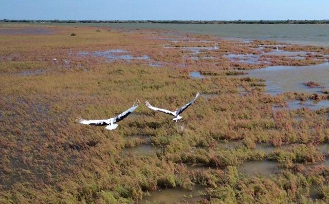 “我們這裏是中國東方白鸛之鄉、黑嘴鷗繁殖地,去年以來還新發現了火烈鳥、白鵜鶘、勺嘴鷸。“當地負責同志介紹,這些年通過退耕還濕、退養還灘,推進濕地修復,生態環境越來越好。
