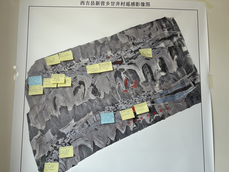 如今,他的辦公室搬到了寧夏回族自治區西吉縣甘井村那棟山腳下的平房。約莫10平方米的空間內,擺放着一張牀、一張辦公桌、一個衣櫃和一雙雨鞋。牆上那張甘井村的全域地圖上,貼着若干手寫的便籤,記錄着重點幫扶村民的家庭、疾病和醫保情況,分別呈現在地圖上對應其家庭地址的位置。