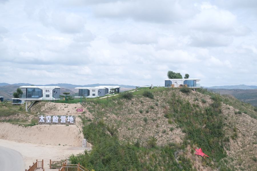 今年,甘井村最新打造的“太空艙露營基地”正式投入運營。項目坐落在村裏海拔最高的山頂,透過半透明的太空艙民宿,遊客既能夠仰望頭頂星空,也能遠眺羣山,俯瞰梯田上大飛機雜糧種植基地裏,開出成片粉色的蕎麥花。