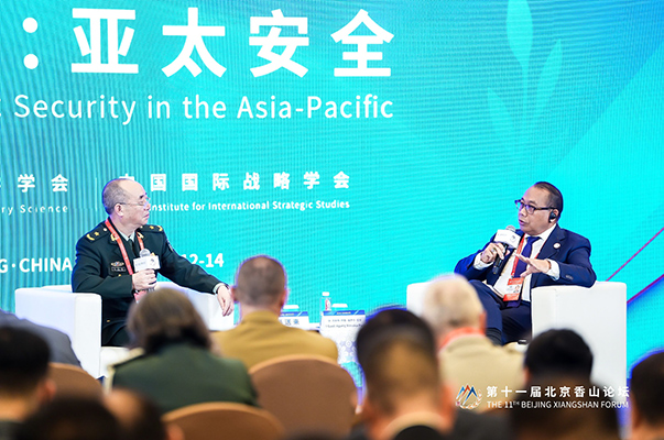 聶送來(左)參加以“亞太地區安全”為主題的高端訪談。北京香山論壇網站