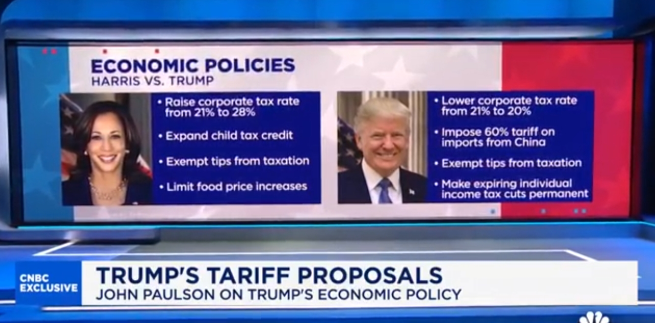 哈里斯和特朗普的經濟政策對比。CNBC視頻截圖