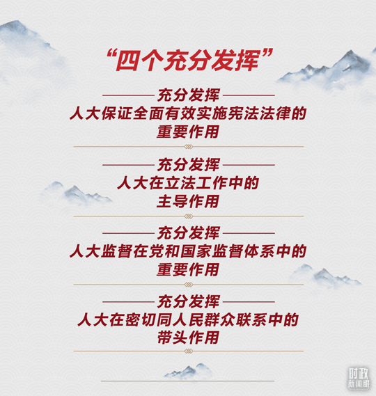 在今年這次大會上,總書記作出“四個充分發揮”的重要部署,與各級人大及其常委會“四個機關”建設緊密相關。從確保憲法法律得到有效實施,到推進科學立法、民主立法、依法立法,從擔負起憲法法律賦予的監督職責,到豐富人大代表聯繫人民羣眾的內容和形式,總書記提出了明確要求。