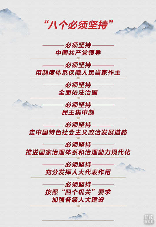 在今年這次大會上,總書記用“八個必須堅持”系統總結新時代人民代表大會制度理論和實踐創新重大成果。