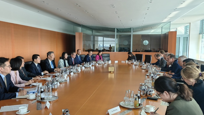 9月17日,王文濤在柏林會見德國總理府部長施密特。雙方重點就歐盟對華電動汽車反補貼案等議題進行深入交流。中國駐德國大使鄧洪波參加會見。