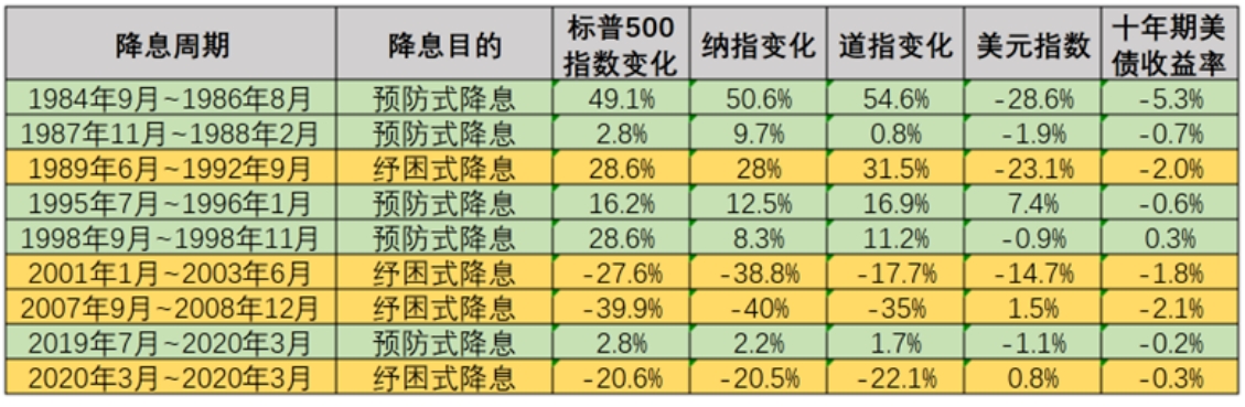 過往降息週期中美股、美元和十年期美債的表現每經制圖(數據來源:海通證券)