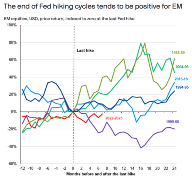 美聯儲加息週期的結束往往對新興市場有利摩根大通