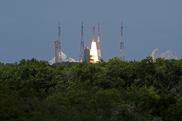 2023年7月14日,印度“月船3號”發射升空 視覺中國