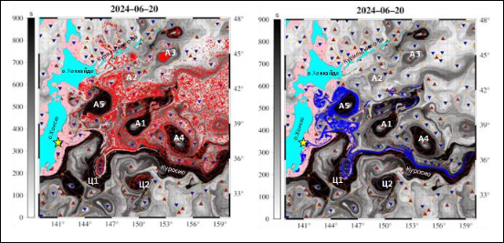 今年6月至7月科考調查範圍,主要集中在黑潮、黑潮與親潮交匯海域,各點位數據單位均為TU報告截圖