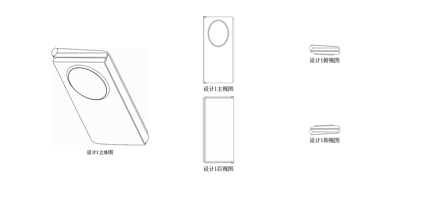 榮耀早在2021年12月也申請了三折屏的外觀專利。今年4月,國家知識產權局發佈了該專利授權公告,公告顯示,專利權人為榮耀終端有限公司,草圖顯示其三折屏手機大致為橢圓鏡頭,中間較兩邊厚一些,同樣是“Z”字形摺疊。