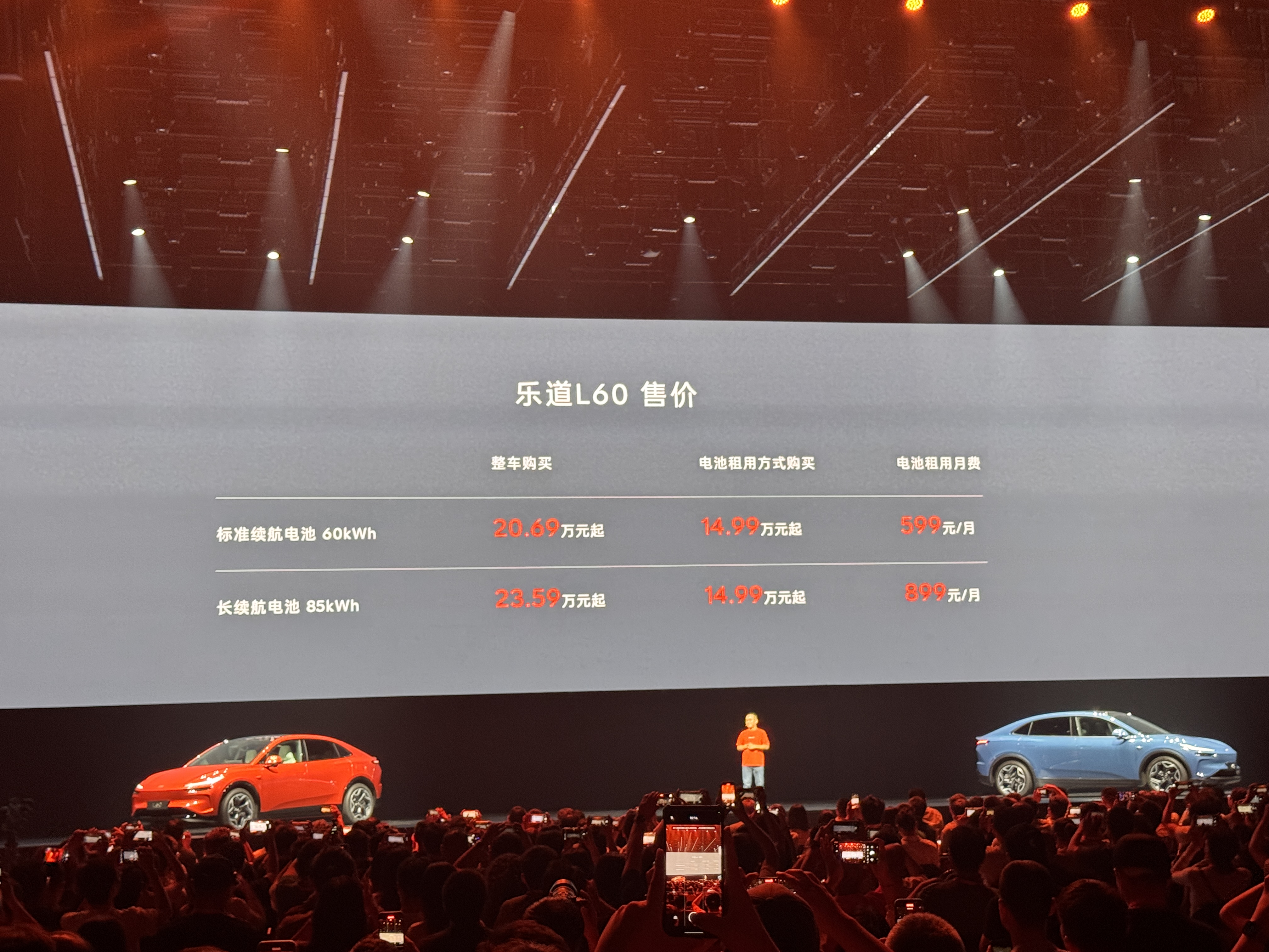 (文/潘昱辰 編輯/高莘)千呼萬喚始出來。自今年5月中旬首次亮相的蔚來子品牌樂道的首款車型——樂道L60於9月19日正式上市。新車共推出標準版(60kWh)與長續航版(85kWh)兩款車型,售價分別為20.69萬元起和23.59萬元起;如果採用電池租用(BaaS)的購車模式,樂道L60的起售價可降至14.99萬元,電池月租金分別為599元和899元,並將於9月28日起開啓全國交付。