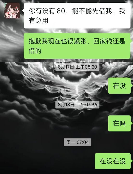 直到某天,小吳拒絕了“女神”的一次借錢請求,至此以後,小吳發出的信息全部石沉大海。