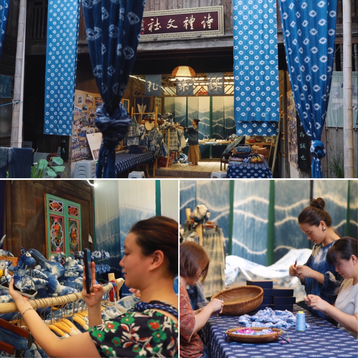 儘管她把家裏的三姑六婆都找來幫忙,印染手作依然供不應求。等不及的遊客們甚至自己動手,客串起了“夥計”。
