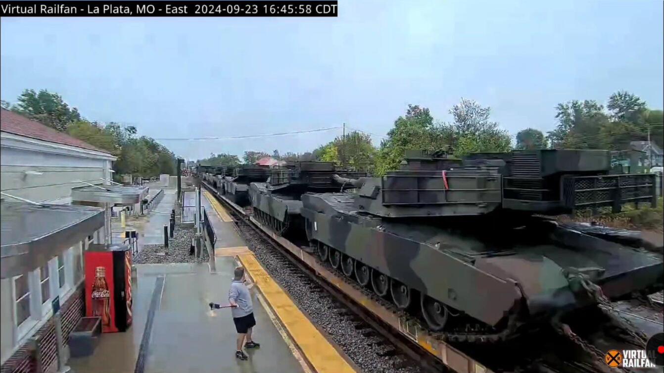 報道稱,根據美國當地鐵路愛好者昨晚在互聯網上上傳的視頻顯示,首批出售給台灣當局的M1A2T坦克已經在貨運列車上通過鐵路向西運輸,預計即將在美國西海岸港口裝船運至台灣。島內軍事專家盧德允昨天晚間在社交網站“臉書”上所發佈的貼文稱“M1A2T快來了”,據信是攝於密蘇里州(原文誤寫為密西西比州,本文編輯勘誤)拉普拉塔鐵路車站的畫面顯示,當地時間9月23日下午4時45分許,一列隸屬北伯靈頓和聖塔菲(BNSF)鐵路公司的貨運列車運載了12輛M1A2坦克向西南方的堪薩斯市行駛,即將運往美國西海岸。