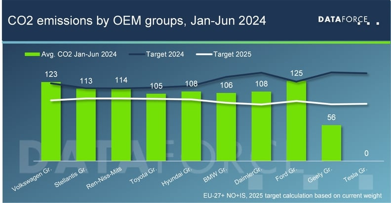 歐洲主要車企2024年上半年碳排放水平 Dataforce