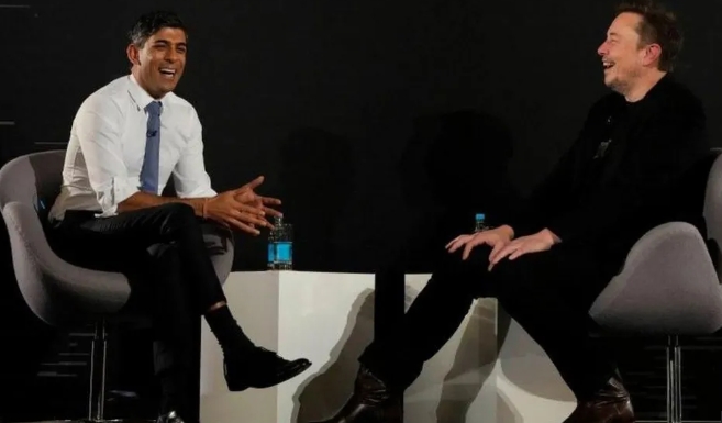 去年11月,馬斯克與英國前首相蘇納克在AI峯會上相談甚歡 BBC