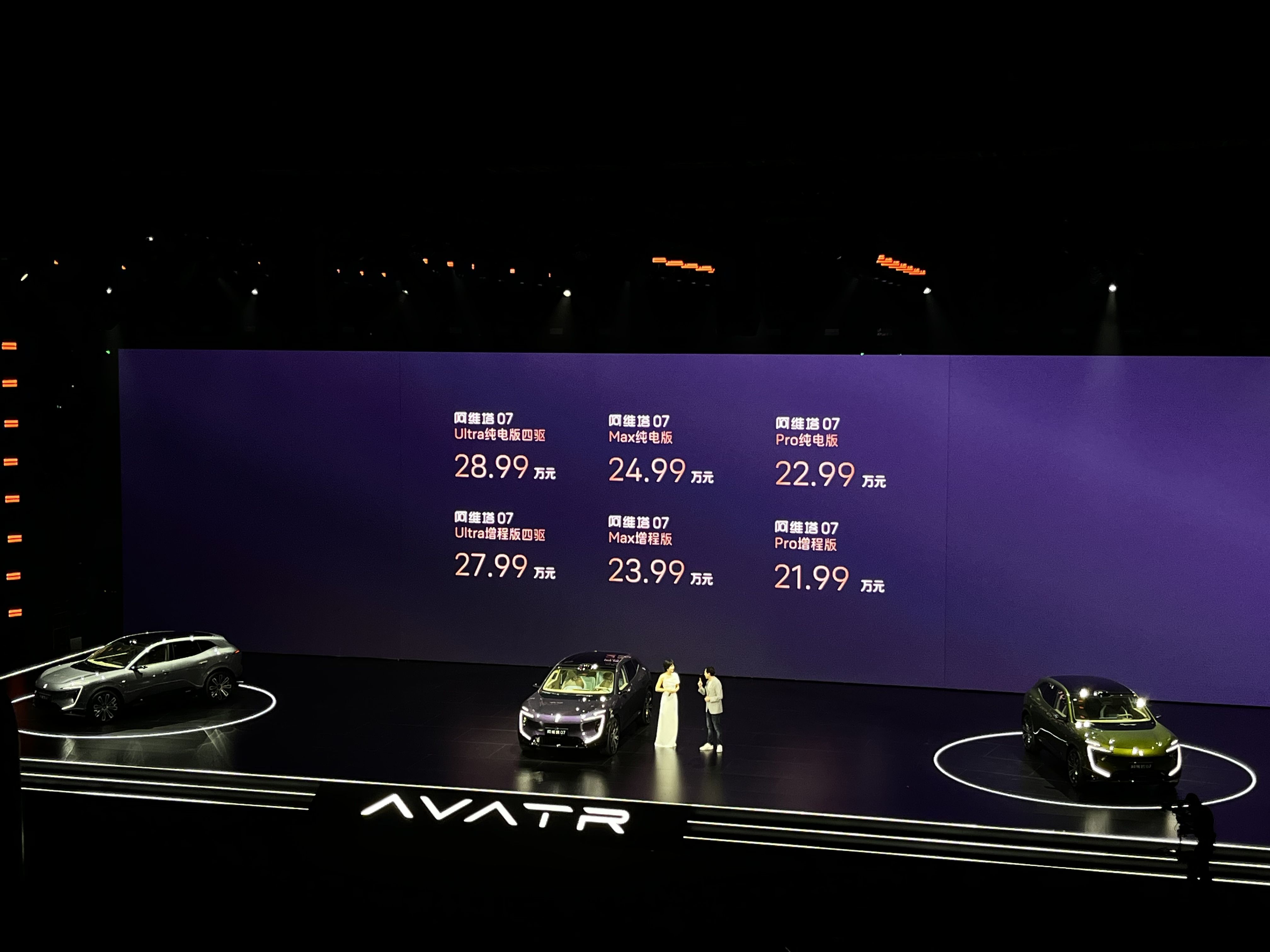 阿維塔07的純電版售價為22.99萬—28.99萬,增程版本則全系比純電版本優惠1萬元,價格區間21.99萬—27.99萬。