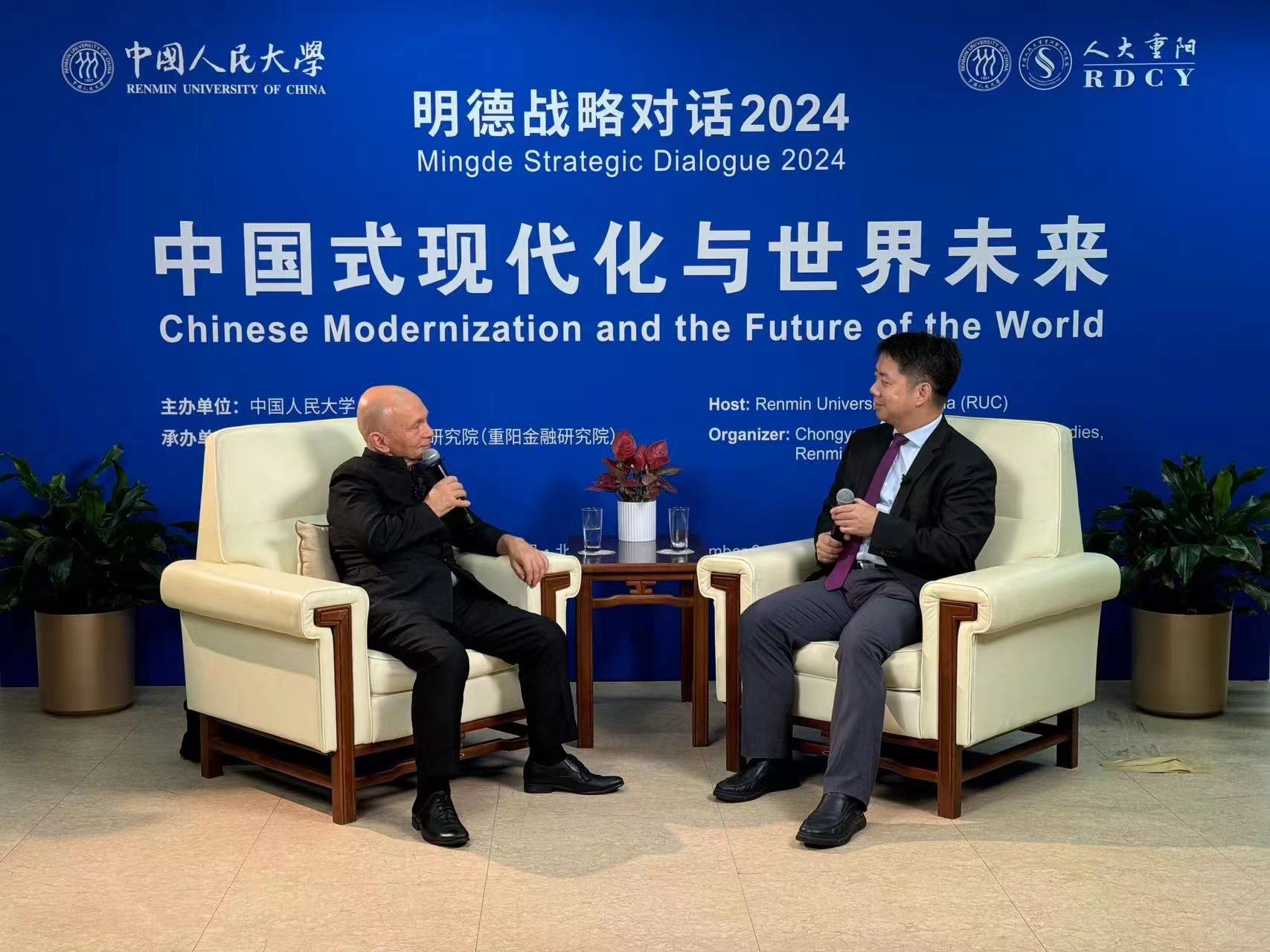 2024年9月,“‘中國式現代化與世界未來’明德戰略對話(2024)”活動在北京舉辦。本次對話會由中國人民大學主辦,中國人民大學區域國別研究院(重陽金融研究院)承辦。