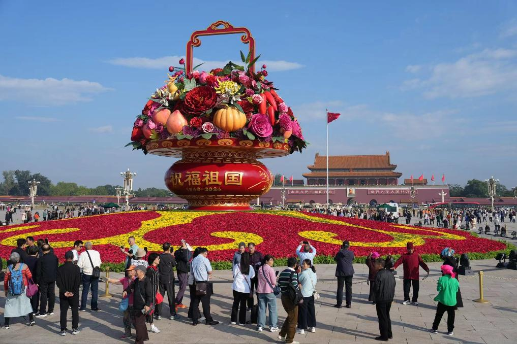 北京天安門廣場上的花籃新華網