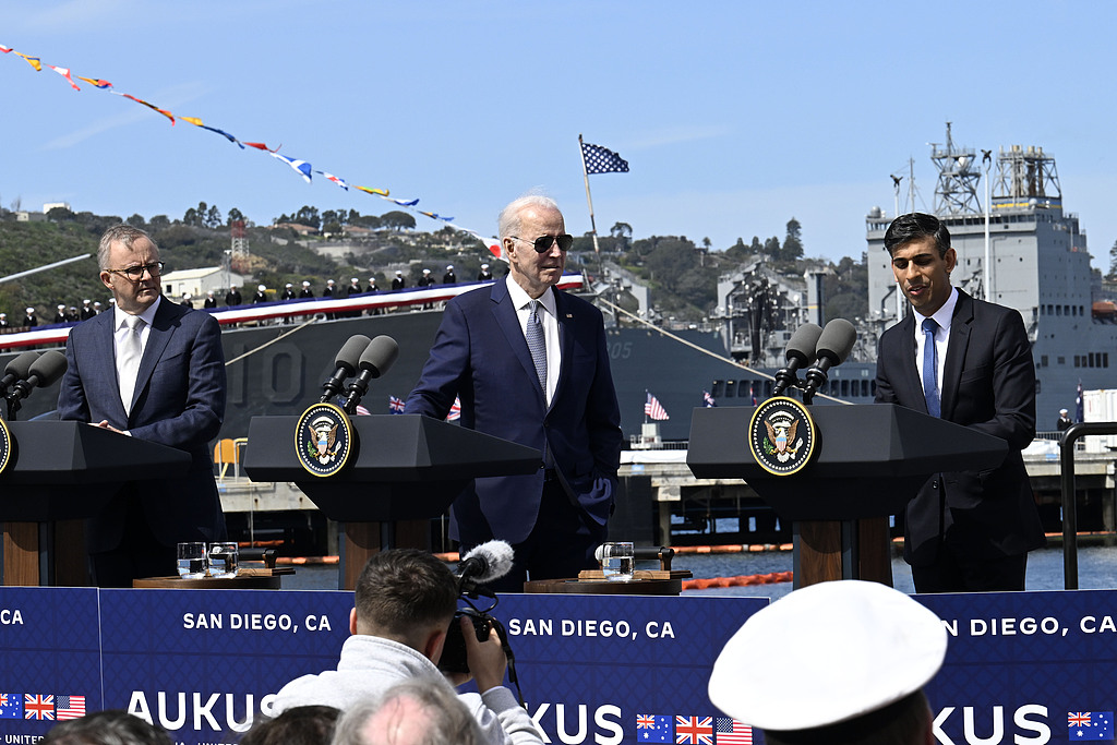 2023年3月,美國、英國、澳大利亞三國領導人在聖迭戈官宣奧庫斯三邊安全協議視覺中國