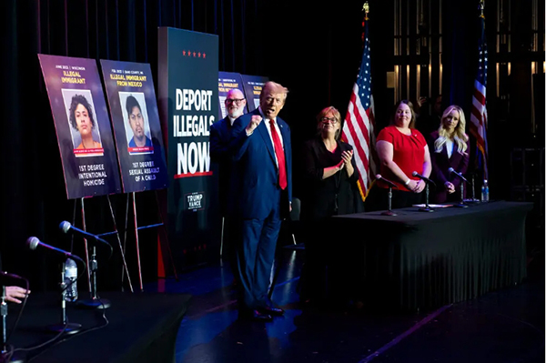 稱非法移民為殺手、人身攻擊哈里斯,特朗普在關鍵州進行“黑暗演講”