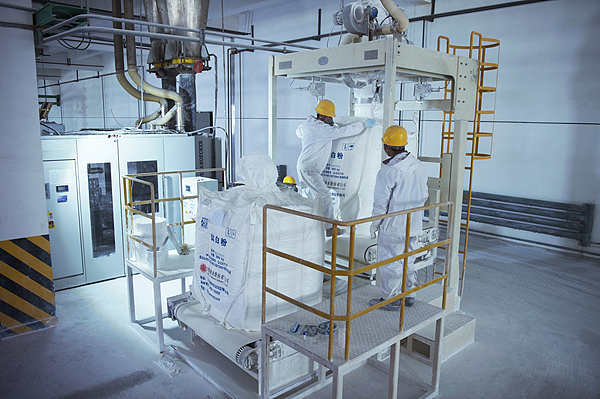 2023年4月6日,遼寧錦州,中信鈦白粉有限公司鈦白粉產品從生產線下線集庫待運。 視覺中國