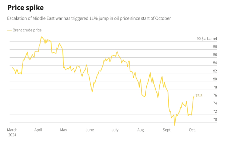 路透社3日觀察到,拜登表示“正在討論”以色列襲擊伊朗石油設施後,國際油價進一步飆升。