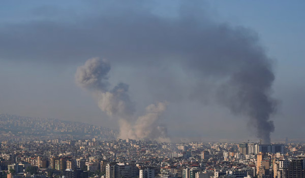 10月5日,黎巴嫩首都貝魯特南部郊區遇襲後濃煙滾滾。路透社