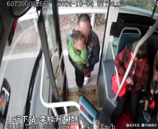 原來,K607路公交駕駛員王肖靜在駕車行至李知州大橋時,發現路邊一男子懷抱着一名光腿的幼童在路邊示意上車,此時的氣温與孩子的着裝引起了駕駛員王肖靜的警覺,發現異常後她立即停車打開了車門讓其上車。