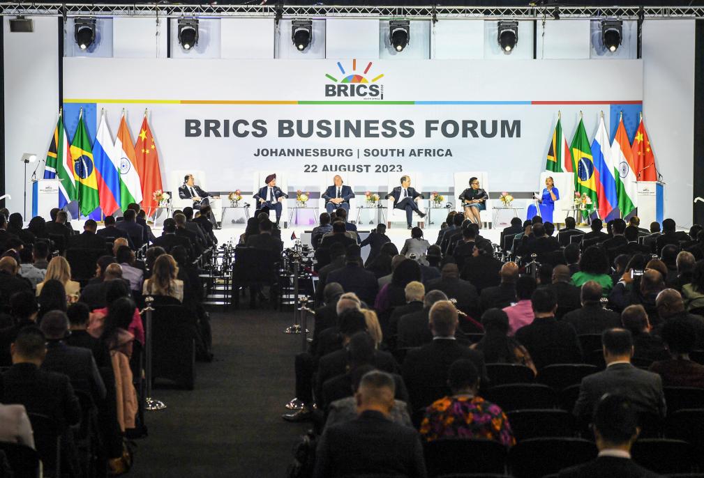 圖為2023年8月22日在南非約翰內斯堡拍攝的金磚國家工商論壇現場。 新華社
