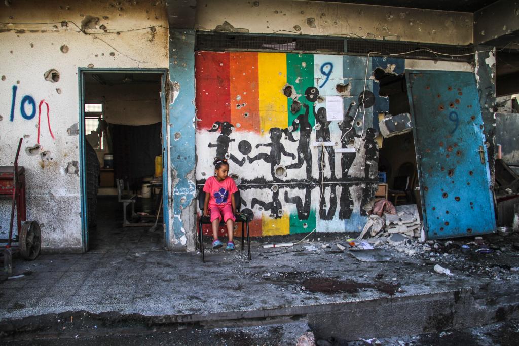 2024年9月21日,在加沙地帶北部加沙城,一名女孩查看以軍襲擊後的廢墟。 新華社
