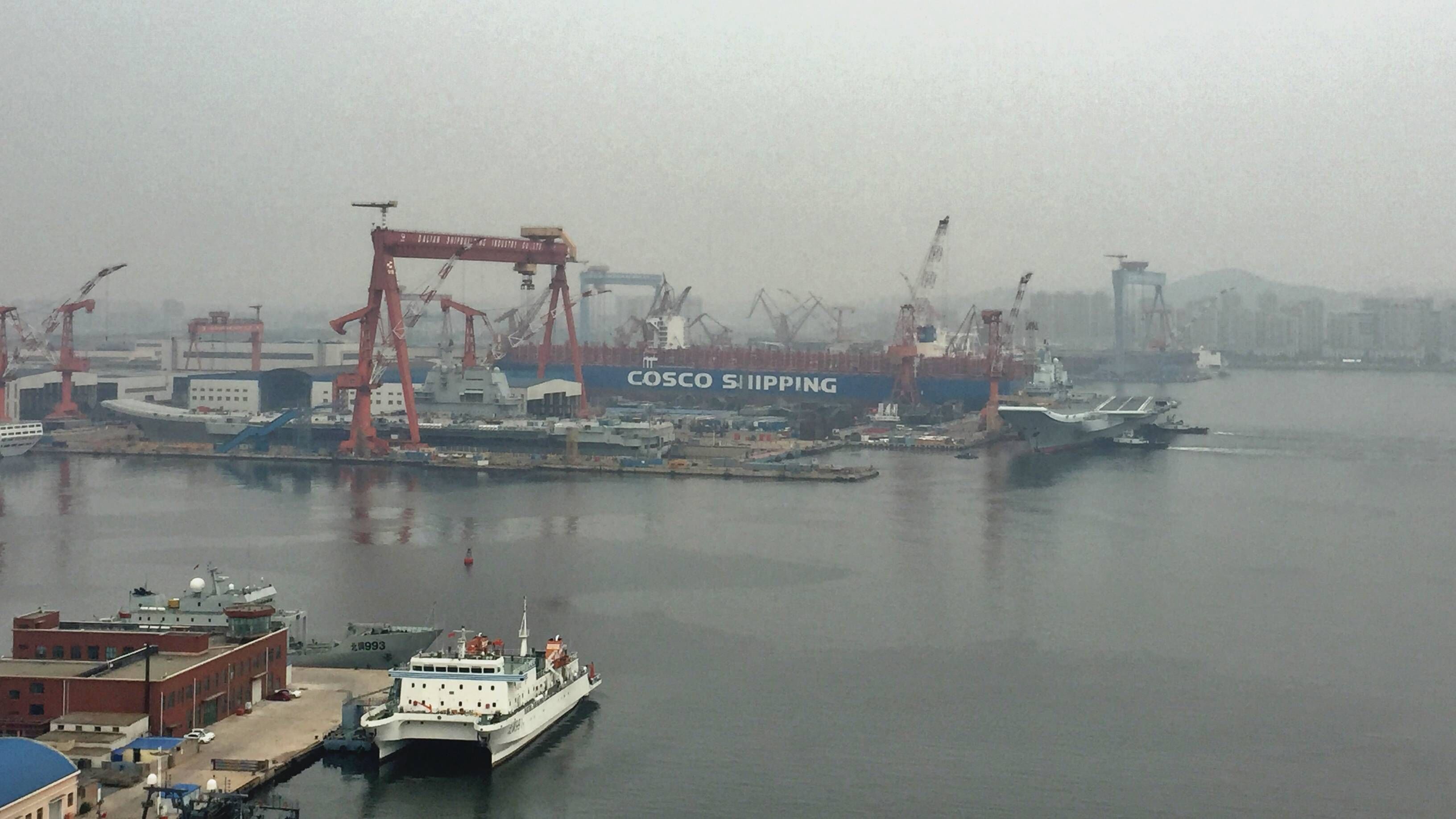 2018年5月,遼寧艦返回大連造船廠進行維護,與當時尚未命名入列的山東艦首次“同框”