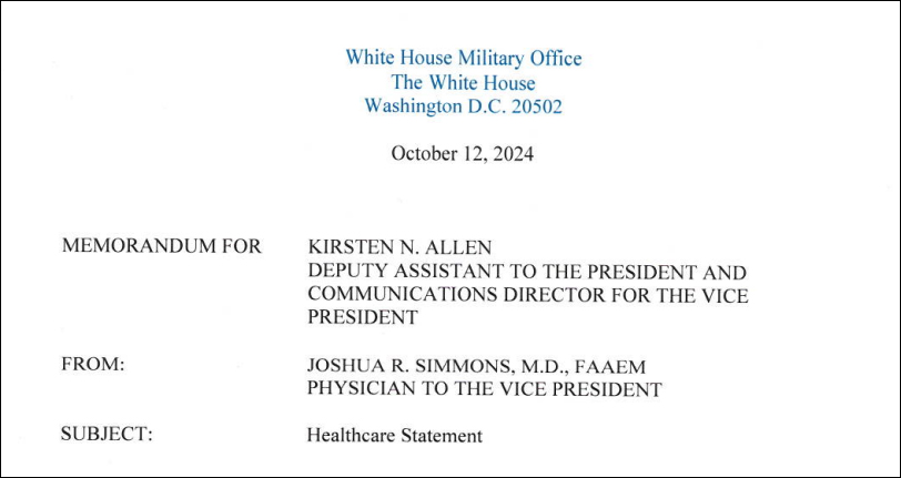 在報告最後,西蒙斯表示,哈里斯的健康狀況良好,“她擁有成功履行總統職責所需的身體狀況和精神韌性。”