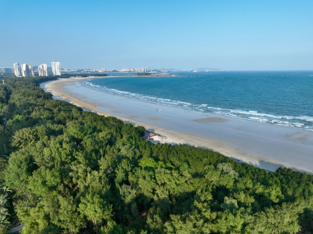 鬱鬱葱葱的東山縣沿海防護林(無人機拍攝)。新華社記者 姜克紅 攝