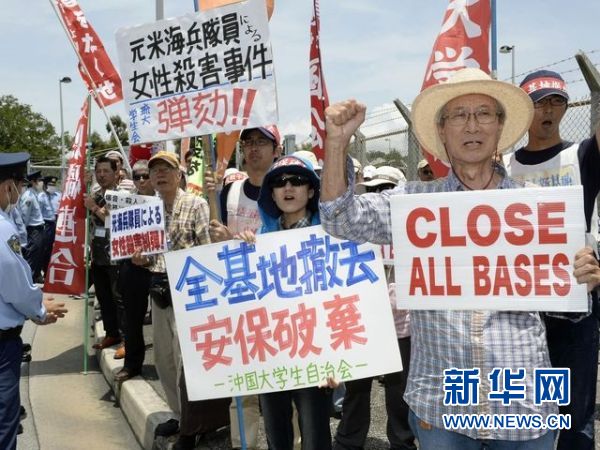 沖繩民眾抗議美軍基地新華網
