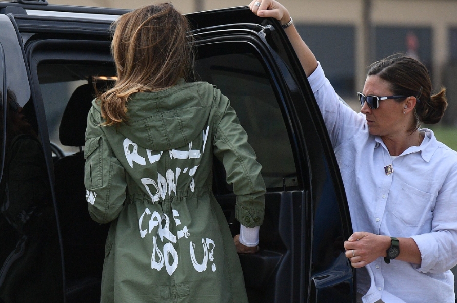 梅拉尼婭2018年身穿寫着“我不在乎,你呢”的夾克 美媒資料圖