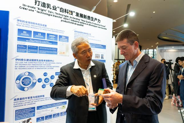 圖3. 國際乳聯主席Gilles Froment與乳業國創中心營養與健康研究中心執行主任、伊利集團總裁助理司徒文佑交流未來合作