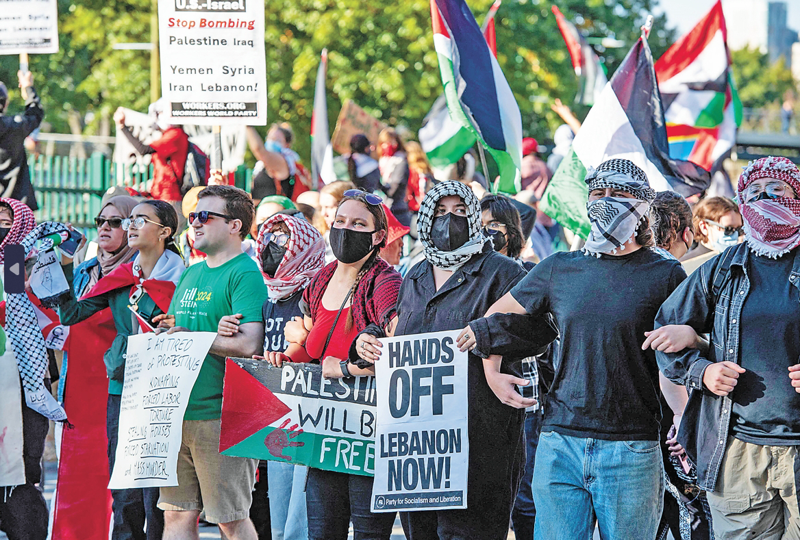 當地時間2024年10月6日,美國波士頓的抗議者要求在加沙立即停火。 視覺中國