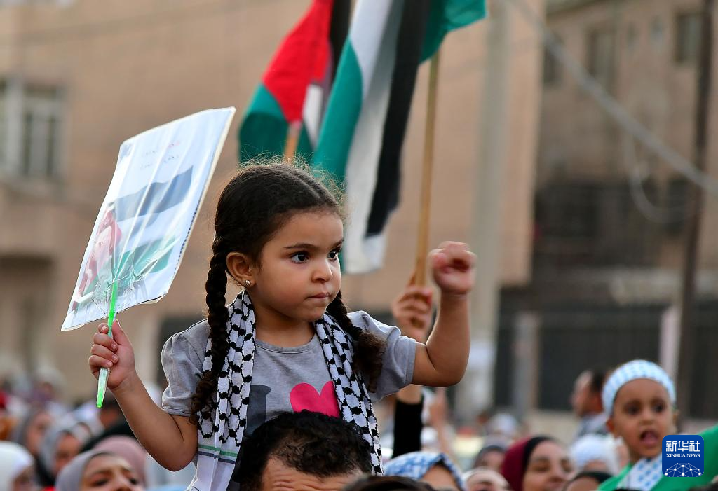 2024年1月13日,在美國首都華盛頓,人們參加聲援巴勒斯坦的集會遊行活動。大批示威者揮舞旗幟和標語,高喊口號聲援巴勒斯坦,呼籲停火。新華社