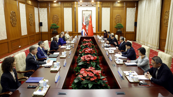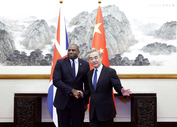 王毅表示,中英同為聯合國安理會常任理事國和世界主要經濟體,應當成為以聯合國為核心的國際秩序的維護者、應對全球性挑戰的合作者、實現國家發展的同行者。今年8月,習近平主席同斯塔默首相通話,就兩國增進接觸、深化合作達成重要共識,提振了雙邊合作信心。中方願同英方一道,以兩國領導人共識為引領,堅持相互理解尊重,堅持把開放合作作為主基調,深化戰略溝通,促進務實合作,推動中英關係進入穩定發展的新階段。