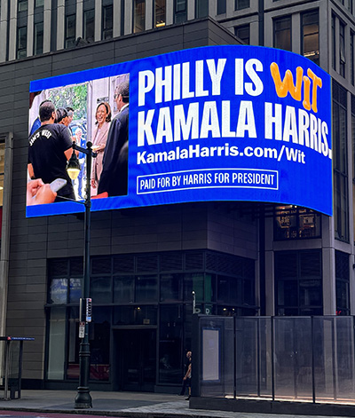 美國賓夕法尼亞州費城街頭的哈里斯競選廣告 社交媒體