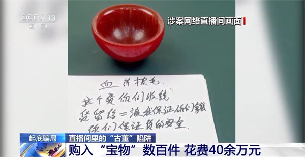 張女士粗略數了一下,母親大大小小購買的所謂“文物”竟有幾百件之多,這些東西加起來竟花費了40餘萬元。追問之下,母親告訴她,自己是從2023年10月開始在一網絡平台直播間購物,其間主播一直以自己與愛人離婚不願分割財產為由,請求粉絲將自己珍藏的寶物進行保管。而且這名網絡主播還承諾,只需要三個月,待離婚手續辦完就會以數倍或者數十倍的價格再將文物買回來。